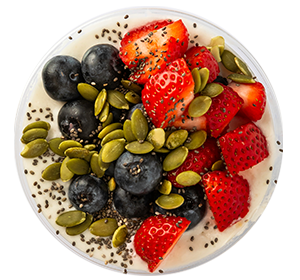 and a blend of fresh fruits, pea protein, granola and super foods.